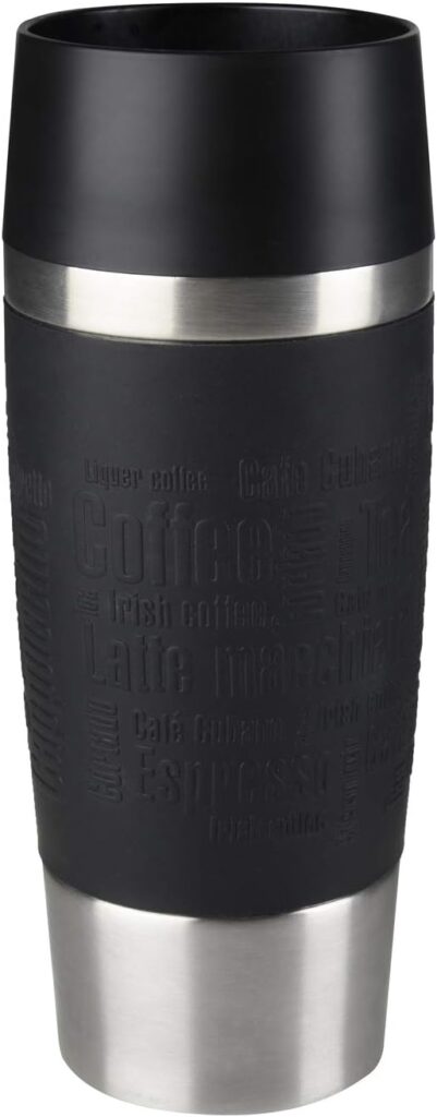Lieferumfang: 1 Emsa Isolierbecher Travel Mug Schwarz mit Silikon Manschette, PP